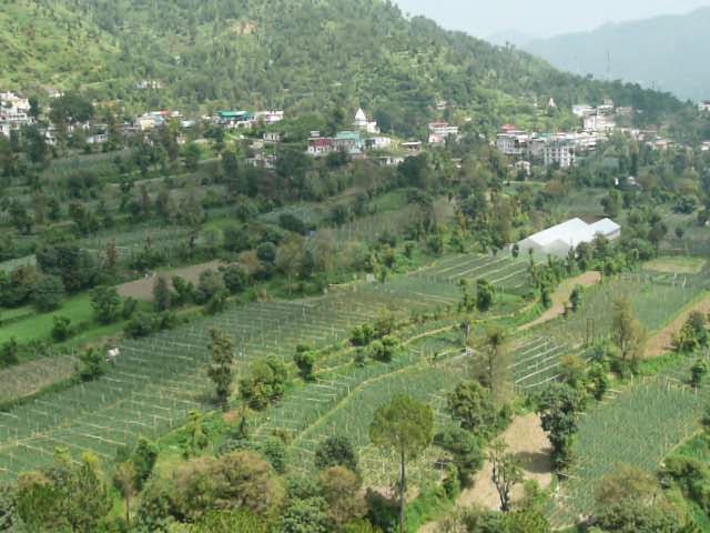 This is a shot showing, a narrow smooth valley, dotted with fields, dwelling units and sundry vegetation in village 'Basal' in Himachal Pradesh, India, amidst picturesque Shivalik hills. Captured the scene during this summer.