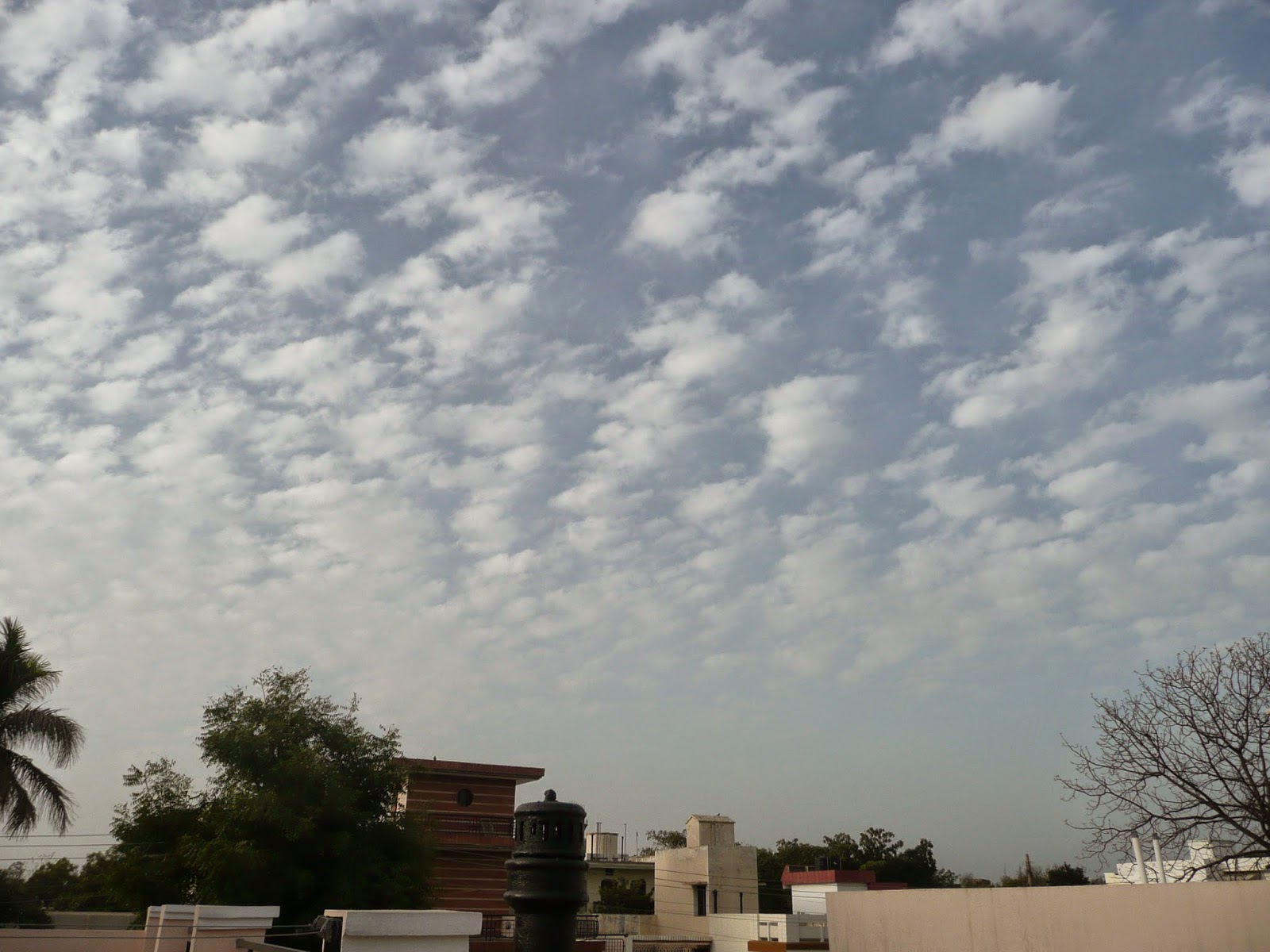 For a few weeks I'd been drawing pictures from my archives to post for the 'Sky Watch challenge'. So i thought enough of this short cut.Therefore, I remained vigilant about the appearance of some patterned cloud formation. Last week an opportunity came my way after a spell of light showers. Here is the view of the skyline in the midst of urban milieu. Pictures taken from a low roof.