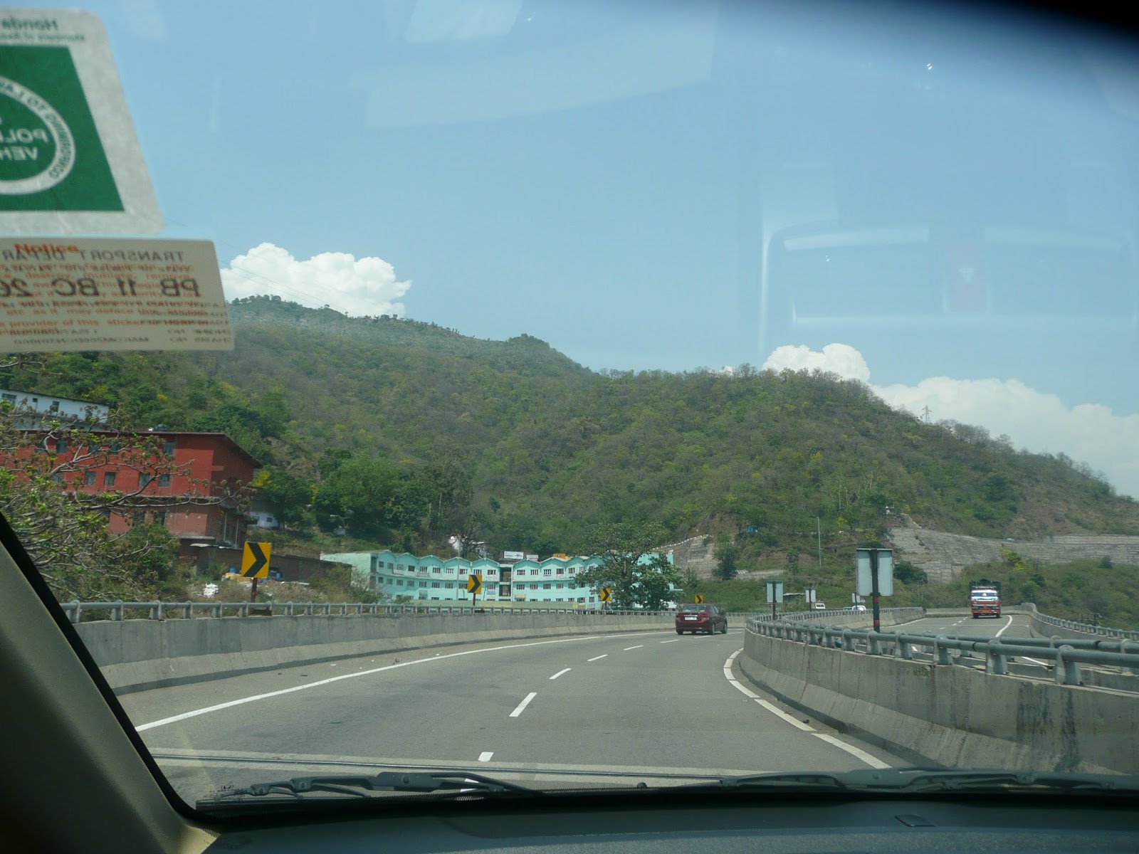 The image pertains to 'HIMALAYAN EXPRESS HIGHWAY' which bypasses the congested' Pinjore and Kalka lanes and provides scenic views of hills and charming skyline. The picture has been taken from the passenger seat of the car ,while on our way back to' Kumarhatti' after a whirlwind visit to our home town 'Patiala.'