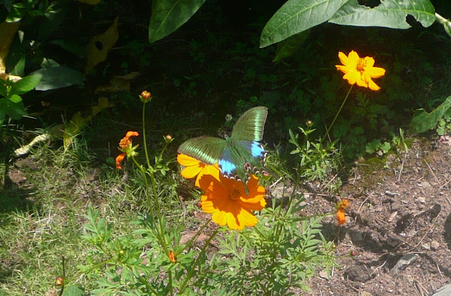 You got great shots of the butterflies, I can never seem to sneak up on them. The swallowtail has such pretty colors, I love the blue-green on the black.