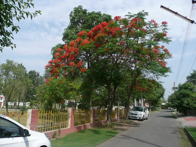 Flowering 'Gulmohar' trees across the park fence in my home town Patiala. Picture taken in early May 2015.