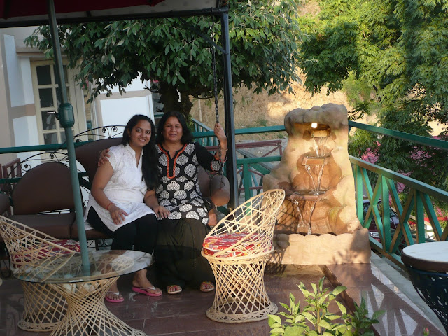 A small space is ensconced as a balcony with a swing and a small improvised fountain, where water is circulated all the time. The terrace overlooks splendid scenic mountainside.