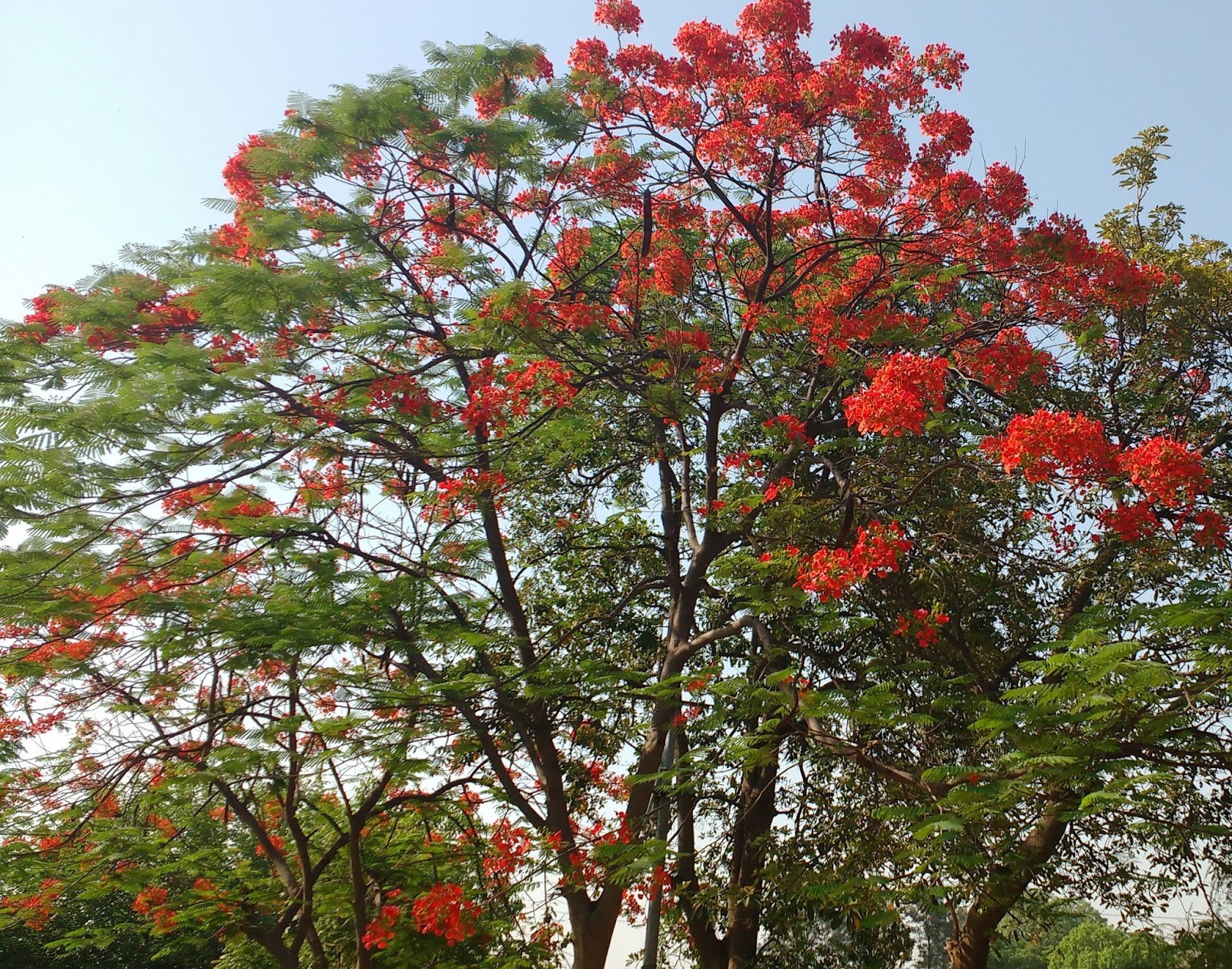 The Jacaranda is in resplendent glory laden with delicate orange flowers on the roadside close to our house.
