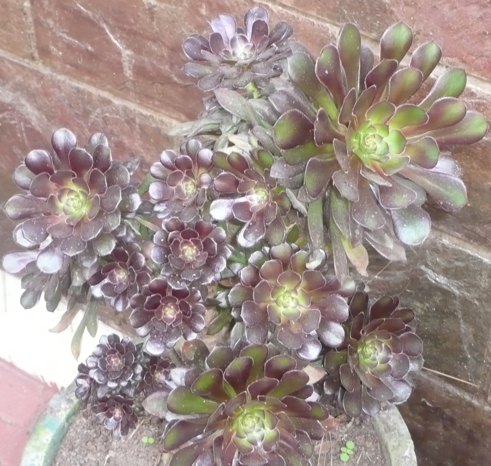The succulent looks sweet with its unusual color and thick beautifully shaped leaves.
